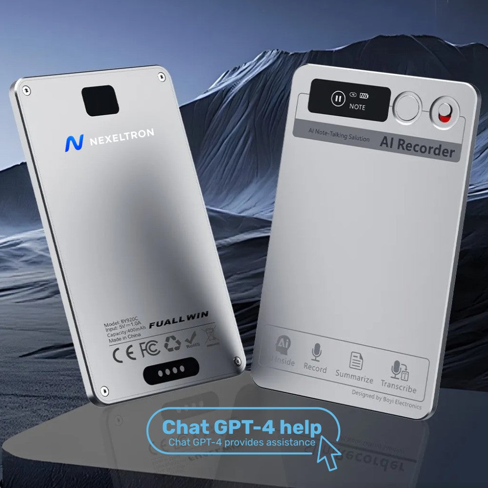 Nexeltron AR to rewolucyjny dyktafon wspierany sztuczną inteligencją i ChatGPT, który nie tylko nagrywa, ale również tworzy podsumowania, transkrypcje i inteligentne analizy rozmów. Smukła, elegancka obudowa kryje w sobie moc technologii, która oszczędza Twój czas i porządkuje wiedzę. Idealny dla biznesu, edukacji i codziennej pracy – zawsze gotowy, by przekształcać słowa w klarowne treści.