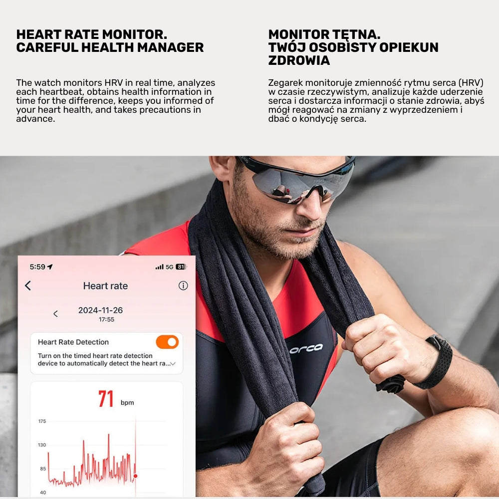 Opaska analizuje każde uderzenie serca, dostarczając precyzyjnych danych o kondycji organizmu, byś mógł reagować na zmiany i dbać o zdrowie z wyprzedzeniem.
