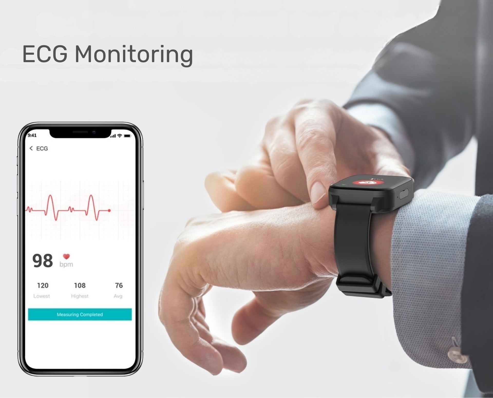 Nexeltron Watch Guardian 4G umożliwia pomiar EKG w dowolnym momencie, wspierając codzienną kontrolę rytmu serca.