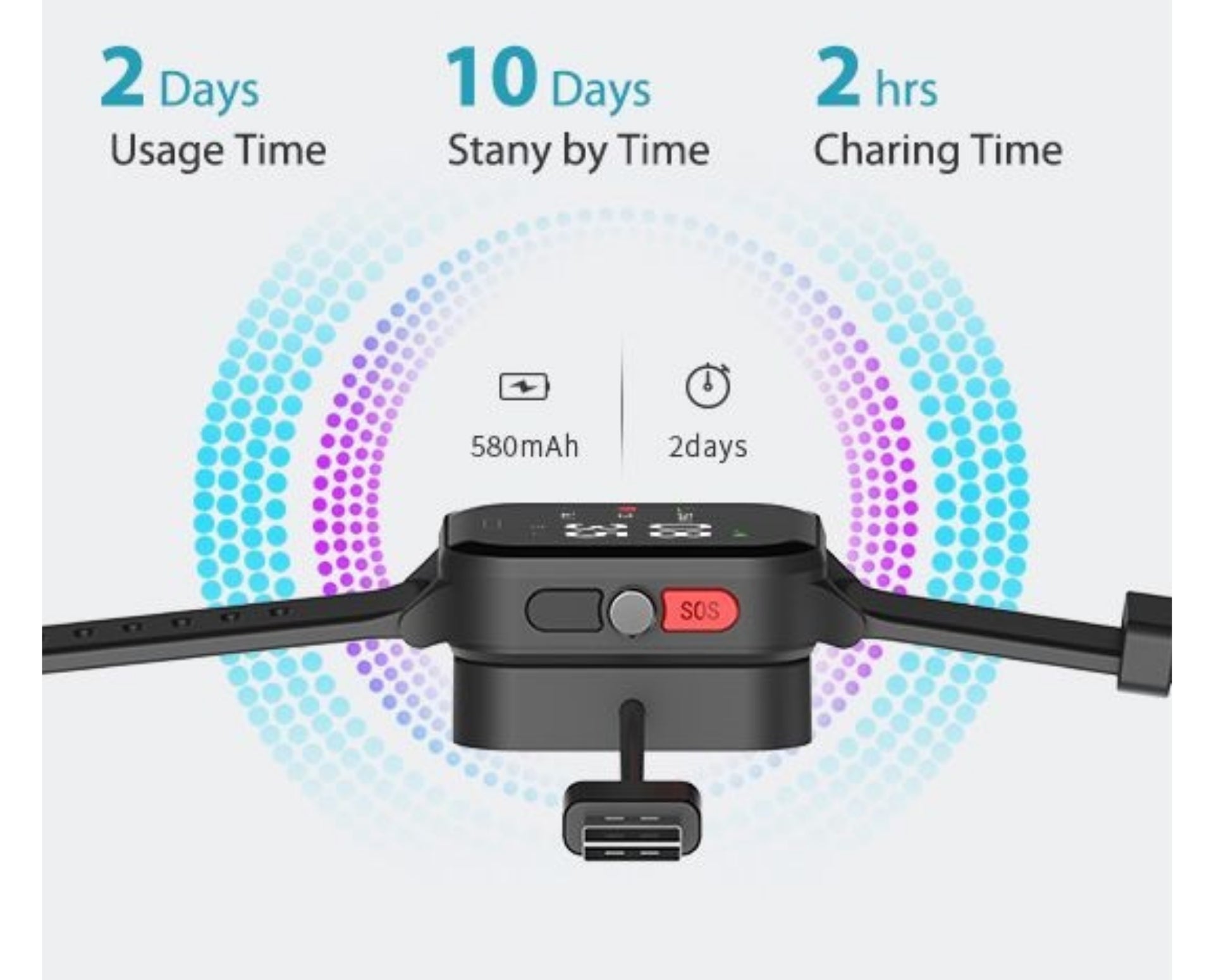 • 🔋 Wydajna bateria 580 mAh – do 2 dni pracy i 10 dni czuwania, szybkie ładowanie magnetyczne.