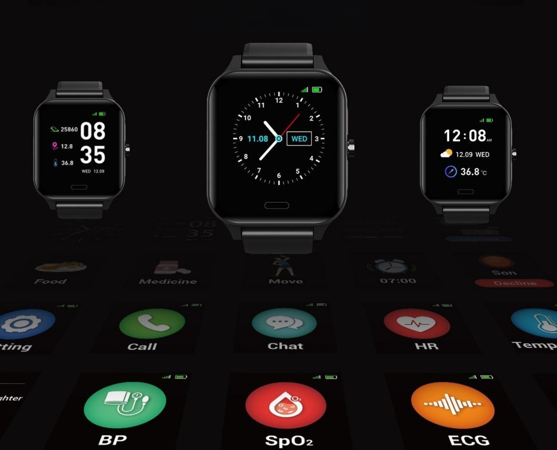 • Czujniki: EKG, PPG, puls, ciśnienie krwi, SpO₂, krokomierz, sen