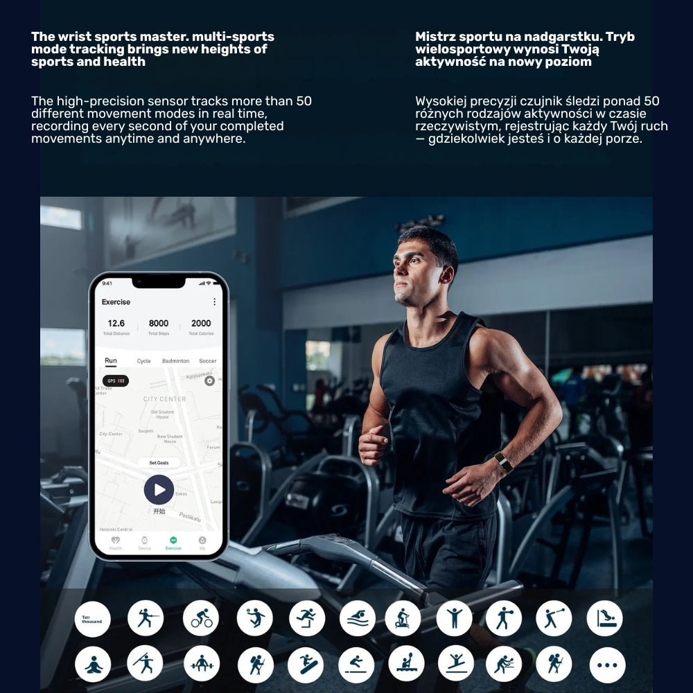 • 🏃‍♂️ Ponad 50 trybów sportowych – dokładne pomiary treningów w czasie rzeczywistym