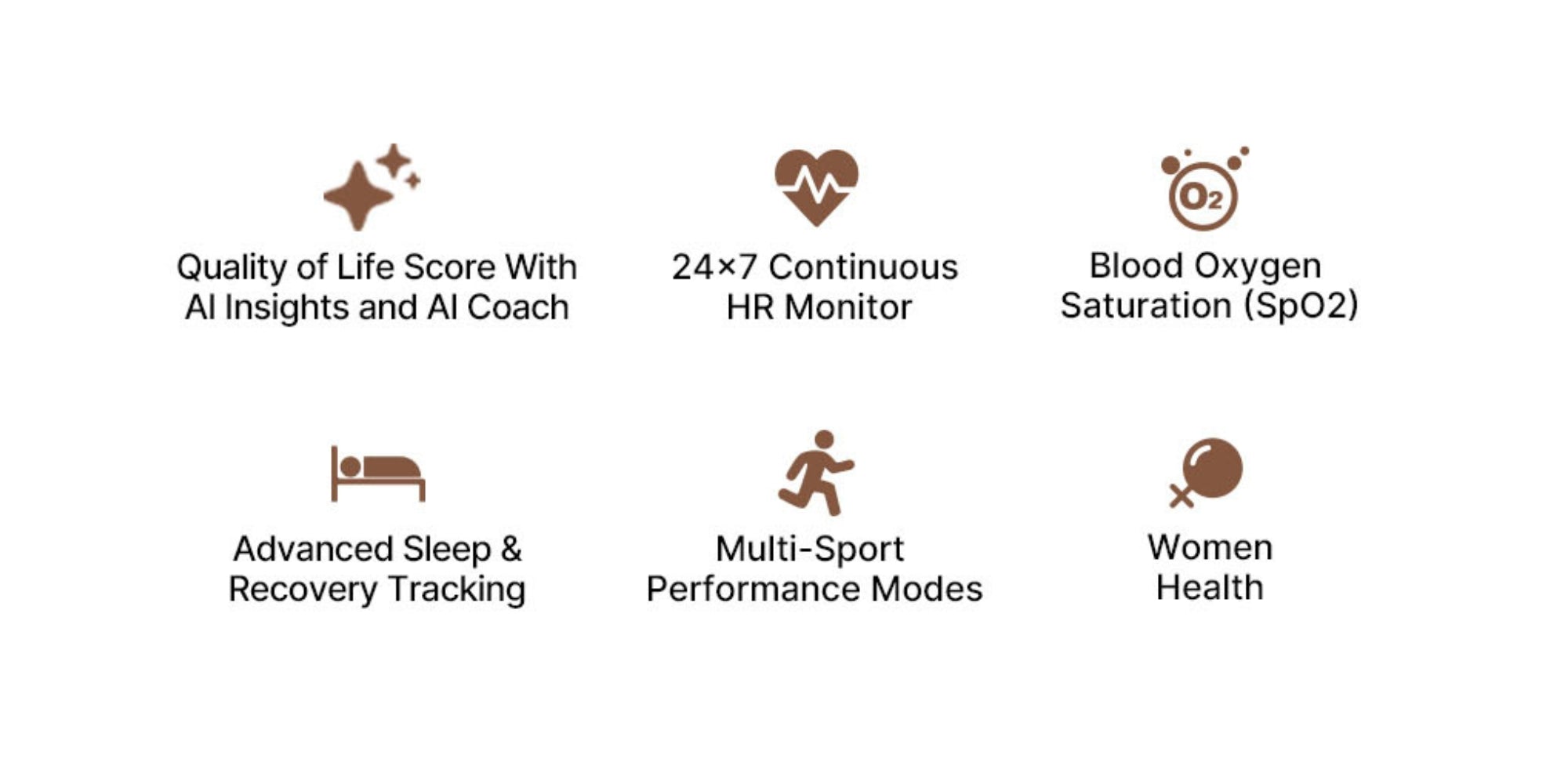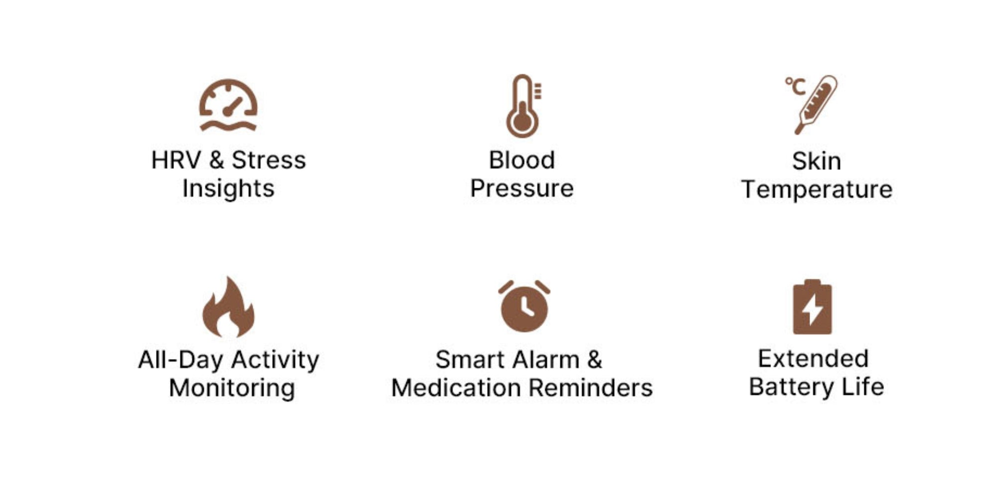 Opaska BioSense zapewnia lekkie, wygodne i dyskretne noszenie, umożliwiając precyzyjny monitoring zdrowia 24/7. Śledzi wiele aspektów Twojego stanu — jakość snu, regenerację organizmu, zdrowie serca, poziom stresu oraz efektywność treningów. Dzięki zaawansowanym analizom AI Health Insights generuje spersonalizowany raport zdrowotny, który szczegółowo interpretuje kondycję Twojego ciała. W połączeniu z AI Health Coachem oferuje indywidualne wskazówki, pomagając Ci planować zrównoważony styl życia, budować zdrowe nawyki bez wysiłku i kompleksowo poprawiać jakość życia.