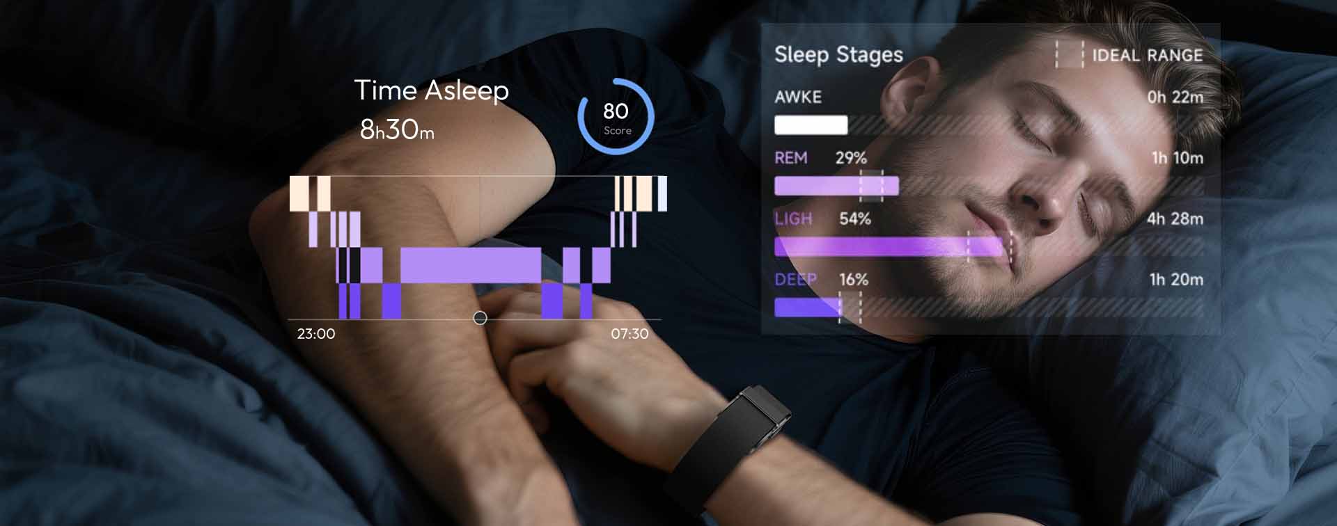 W połączeniu z analizą regeneracji organizmu pomaga Ci zrozumieć, jak skutecznie ciało odzyskuje energię podczas snu — umożliwiając świadome kształtowanie nawyków i poprawę poziomu energii każdego dnia.