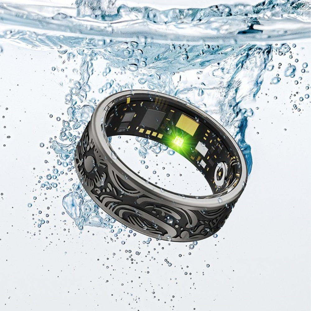 Nie martw się o deszcz czy trening w wodzie — Raven Smart Ring jest odporny na zachlapania i zanurzenia, idealny do codziennego noszenia i sportu.