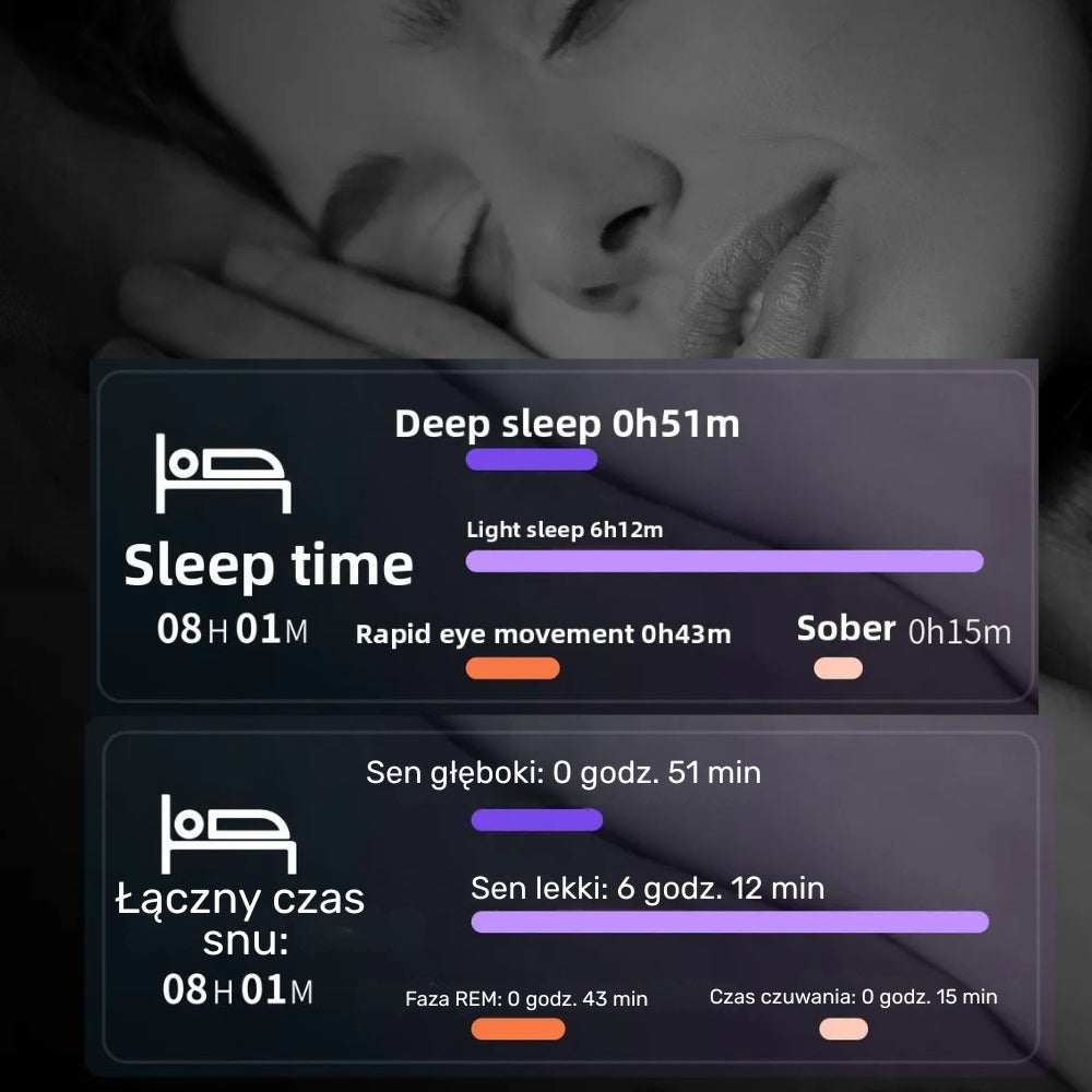 Raven Smart Ring monitoruje fazy snu – głęboki, lekki i REM – pomagając Ci lepiej zrozumieć jakość odpoczynku i zadbać o codzienną równowagę.