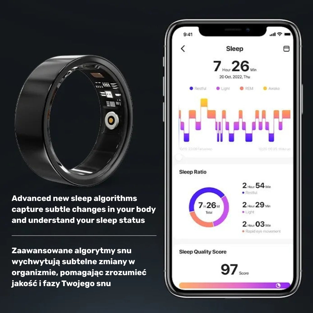 Nie zdejmuj go nawet podczas kąpieli czy pływania. AeroFIT Smart Ring jest odporny na wodę, pot i codzienne warunki użytkowania — monitoruje Twoje parametry bez przerwy.